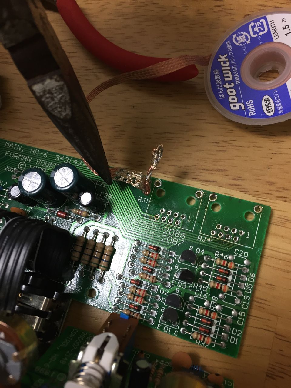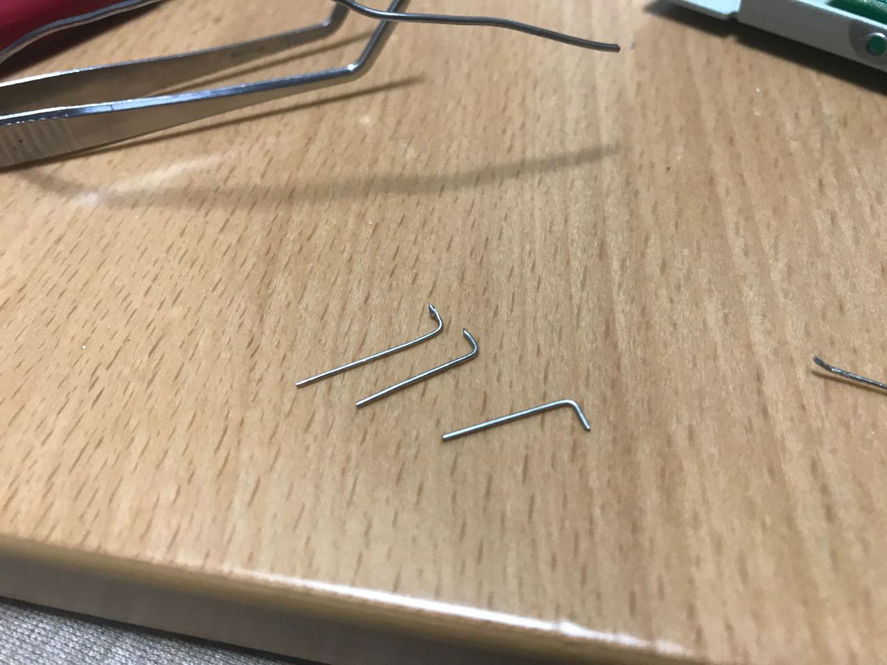 前回、色々と調査と検討を重ねった結果からですが、全く同じ部品は市場では手に入らないので、近い形に部品を加工することに。秋葉原で部品を買ってきて、足の部分を基板取り付けように加工します。